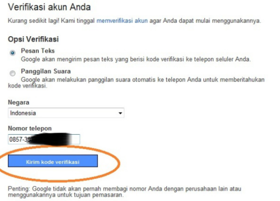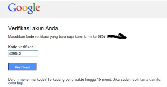 Anda akan mendapatkan sms kode verifikasi dari google dan masukkan kode dalam sms tersebut ke dalam kotak kode verifikasi
